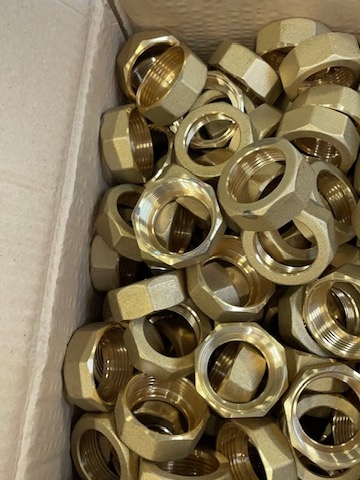 Mosazné matice s vnitřním závitem 5/4″. Pouze celé balení po 120 ks.